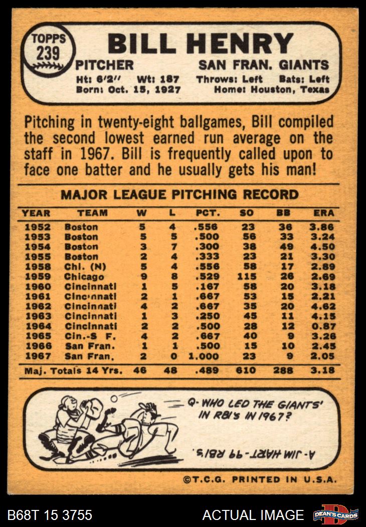 1968 Topps #239 Bill Henry 6 - EX/MT