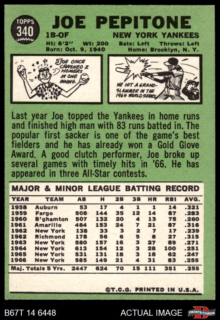 1967 Topps #340 Joe Pepitone