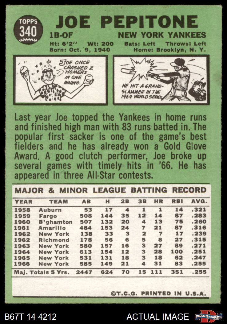 1967 Topps #340 Joe Pepitone 4 - VG/EX
