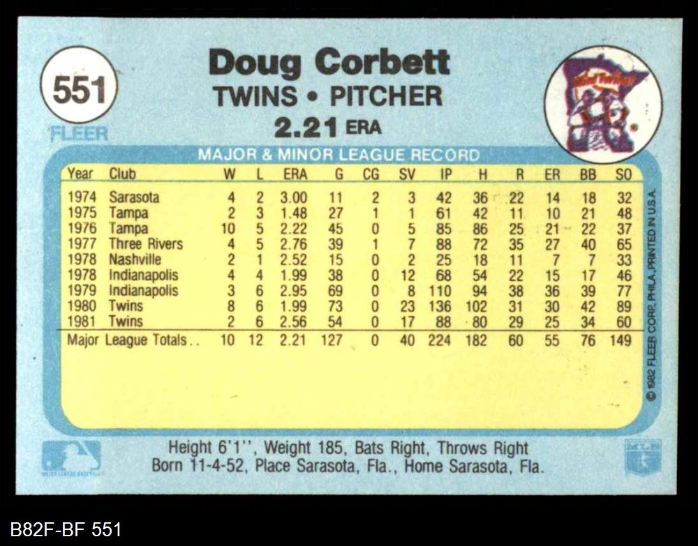 1982 Fleer #551 Doug Corbett 8 - NM/MT