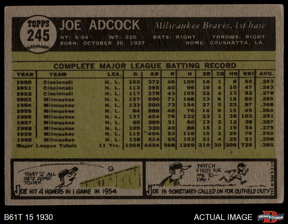 1961 Topps #245 Joe Adcock