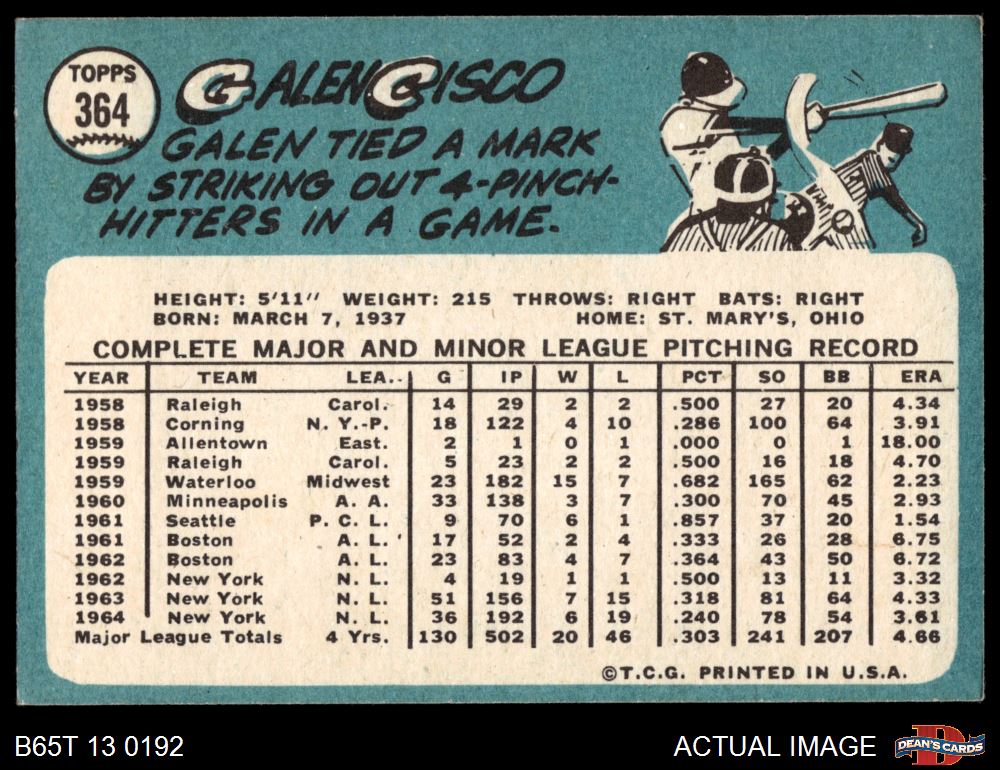 1965 Topps #364 Galen Cisco 3.5 - VG+