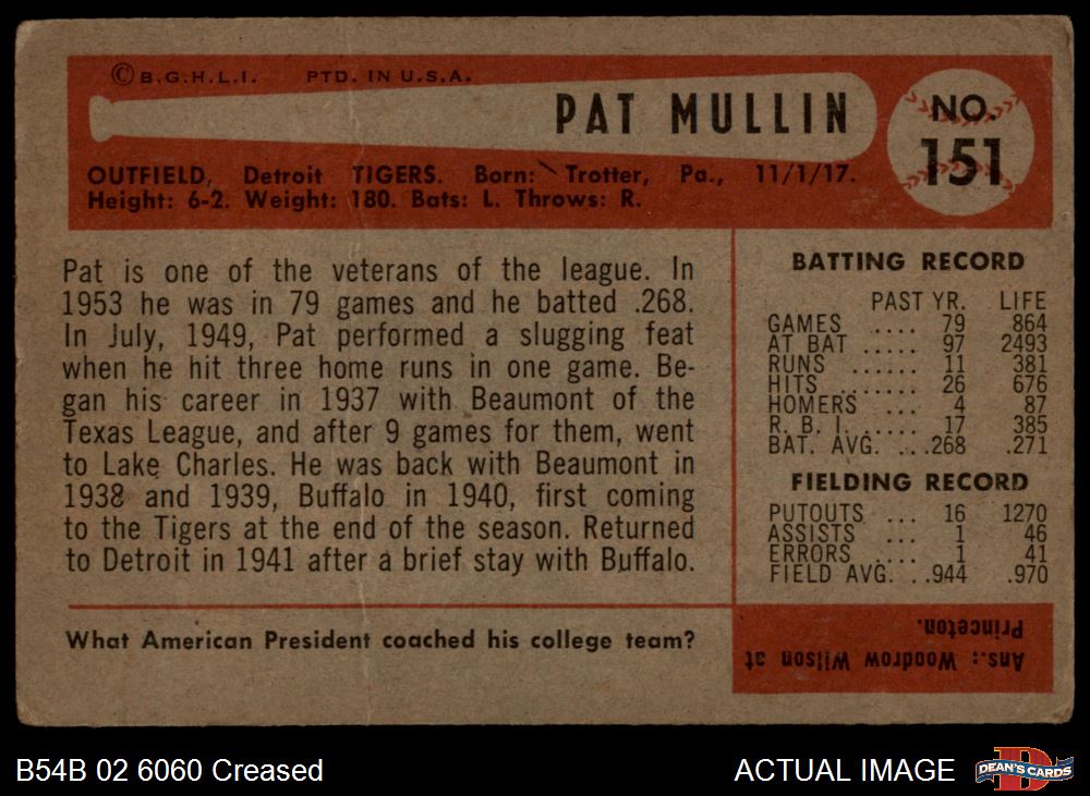 1954 Bowman #151 Pat Mullin 2 - GOOD