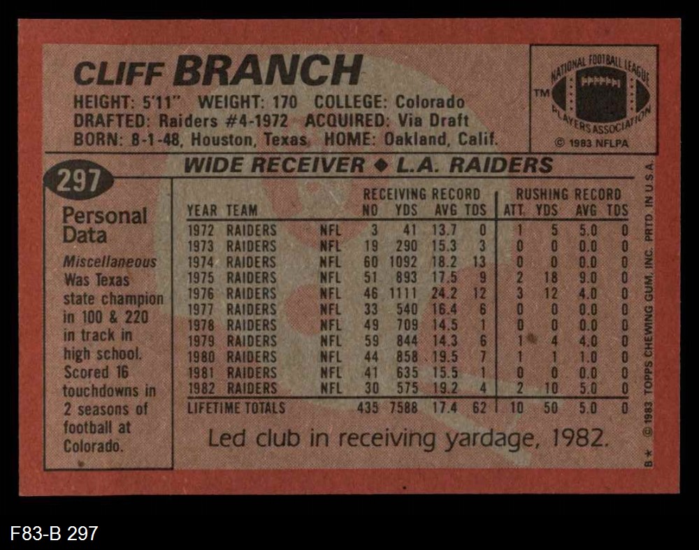 1983 Topps #297 Cliff Branch 8 - NM/MT