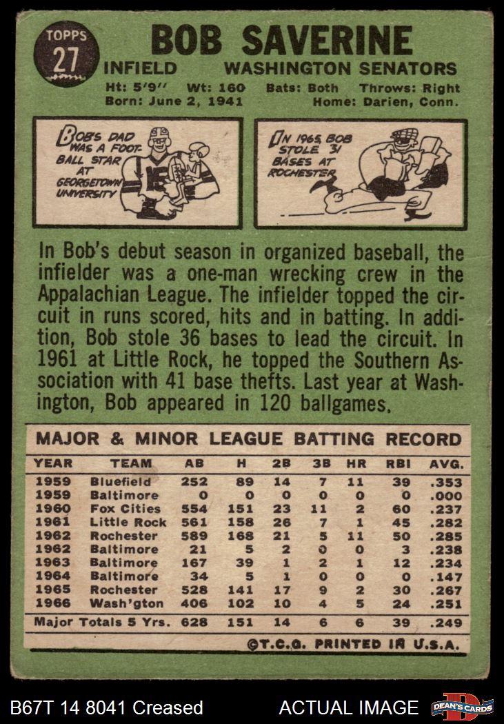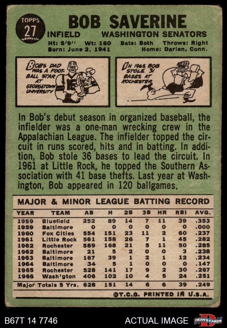 1967 Topps #27 Bob Saverine 1 - POOR