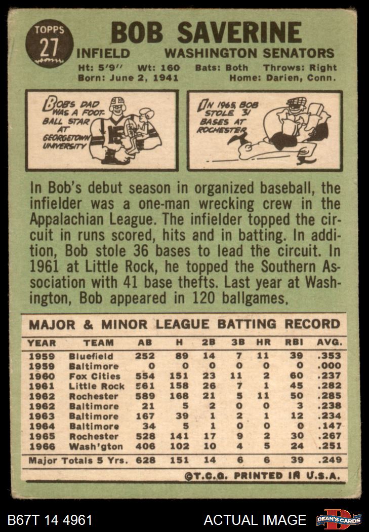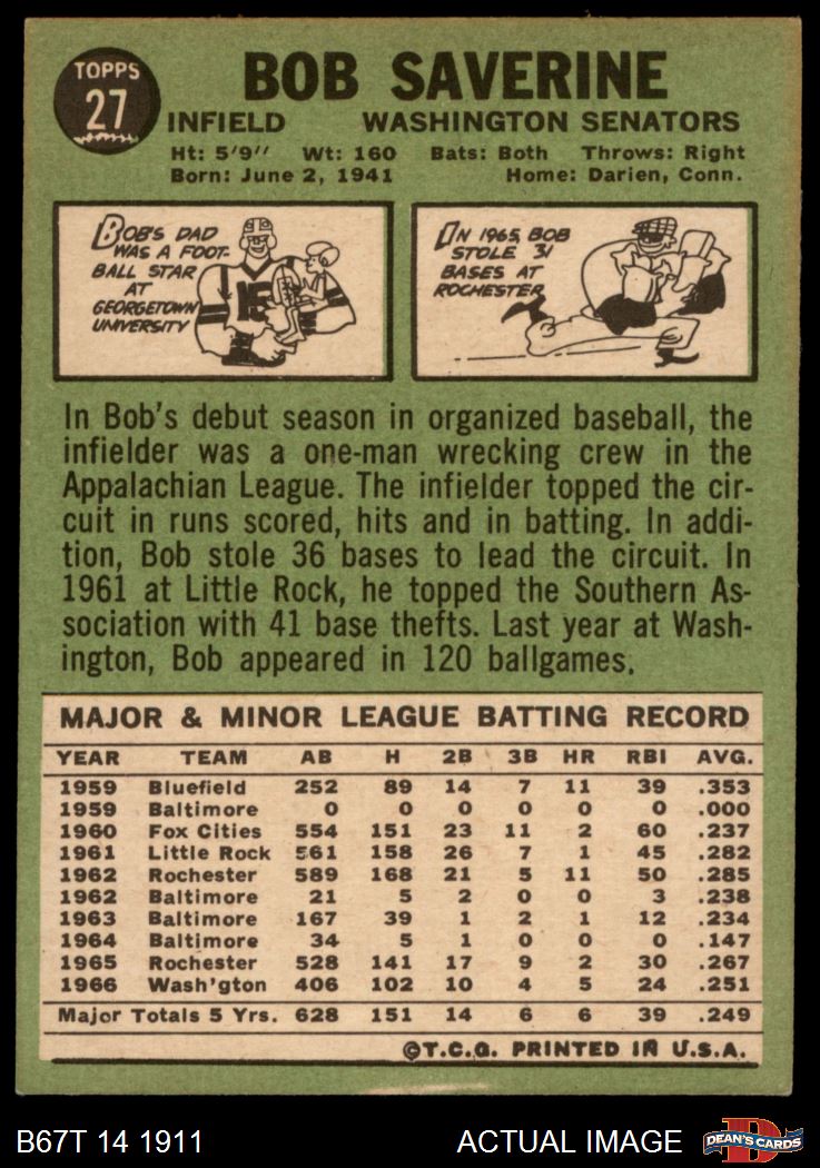 1967 Topps Baseball Cards (11,705 available)1967 Topps Senators (672 available)