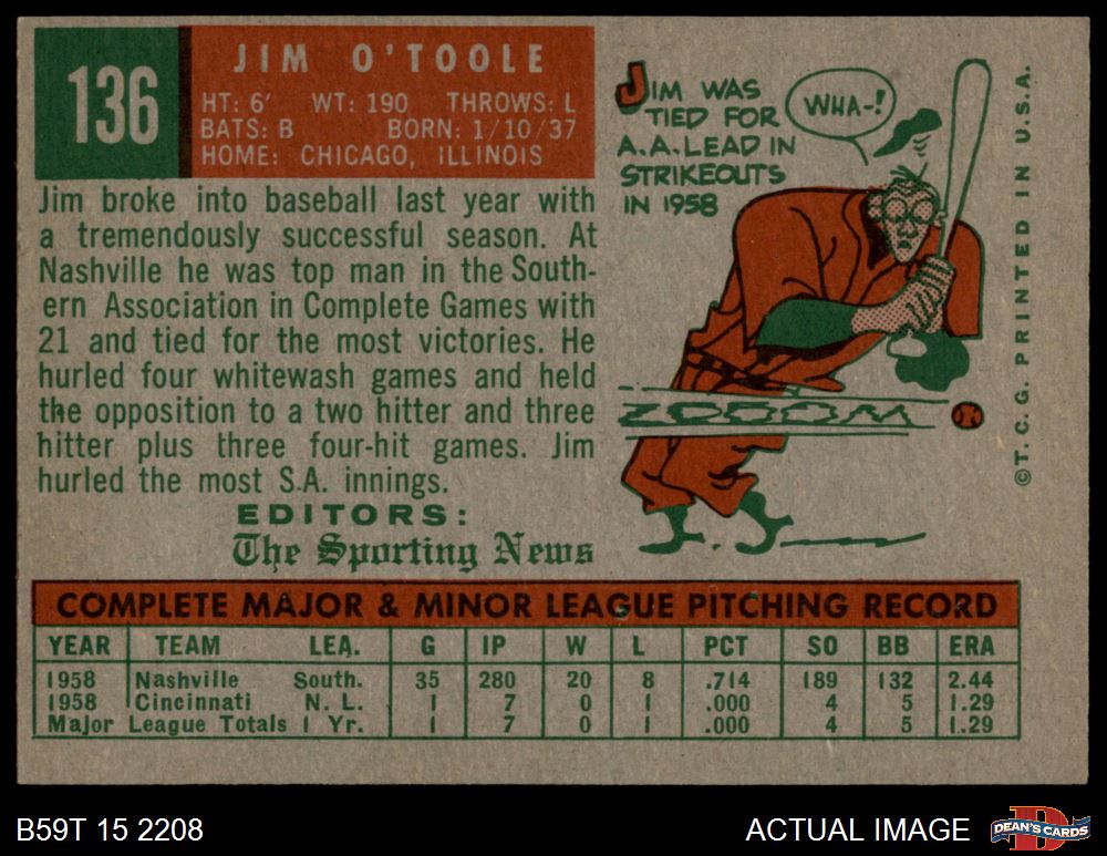 1959 Topps #136 Jim O'Toole AUTHENTIC