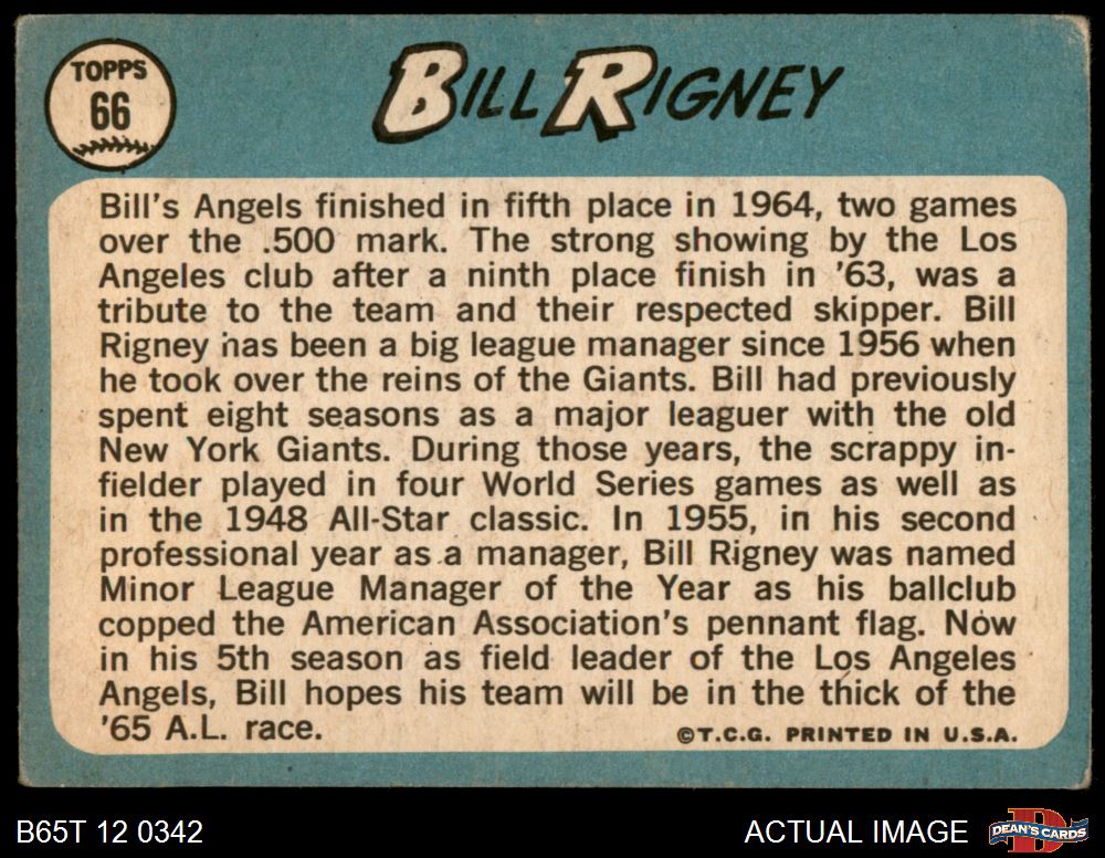 1965 Topps #66 Bill Rigney 1.5 - FAIR