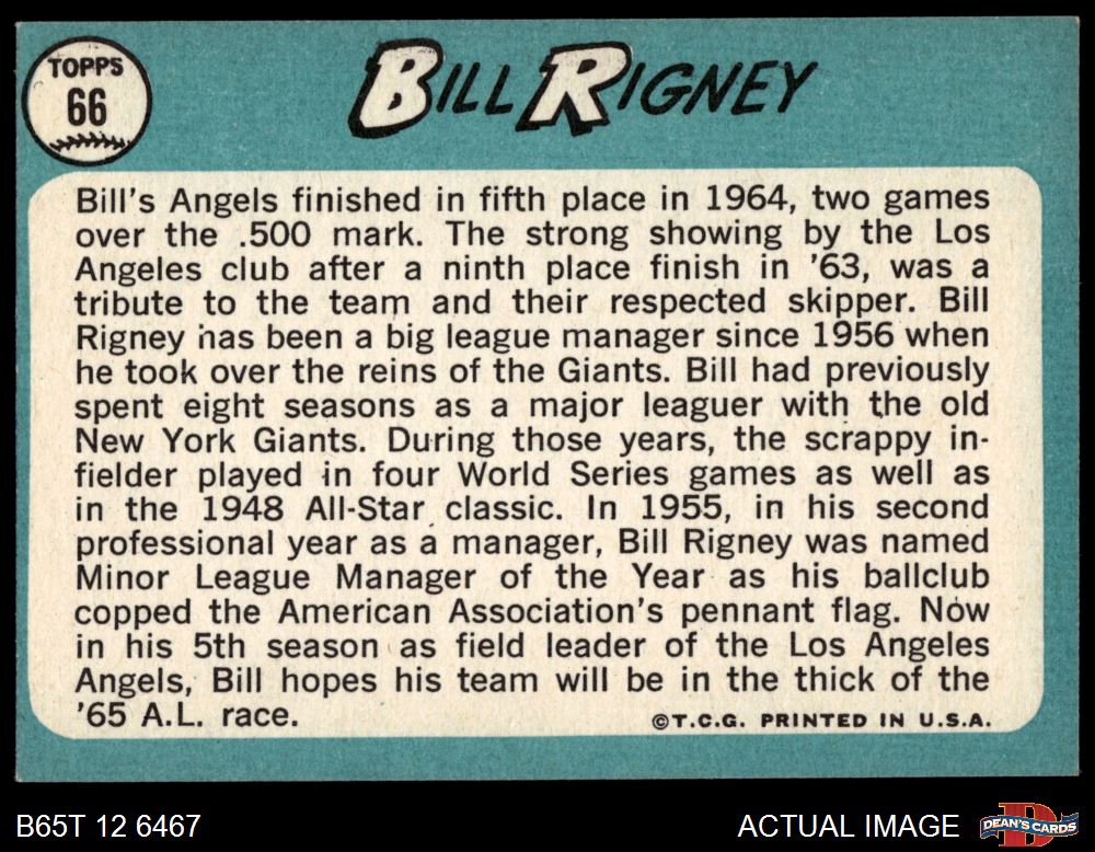 1965 Topps #66 Bill Rigney 4 - VG/EX