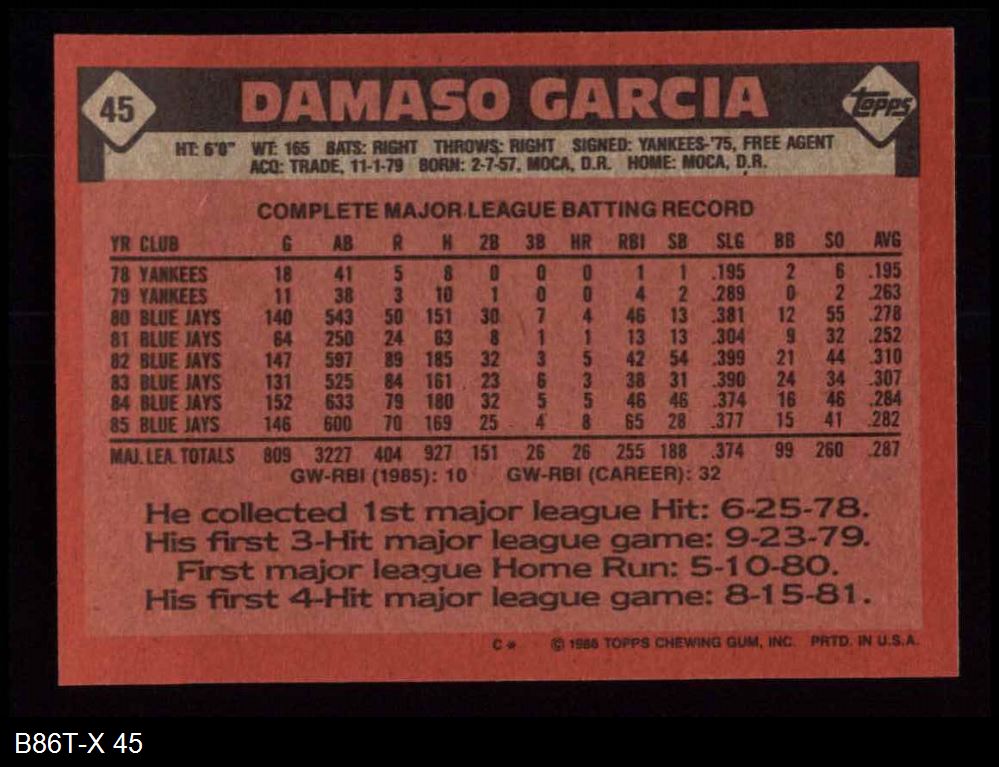 1986 Topps #45 Damaso Garcia 8 - NM/MT
