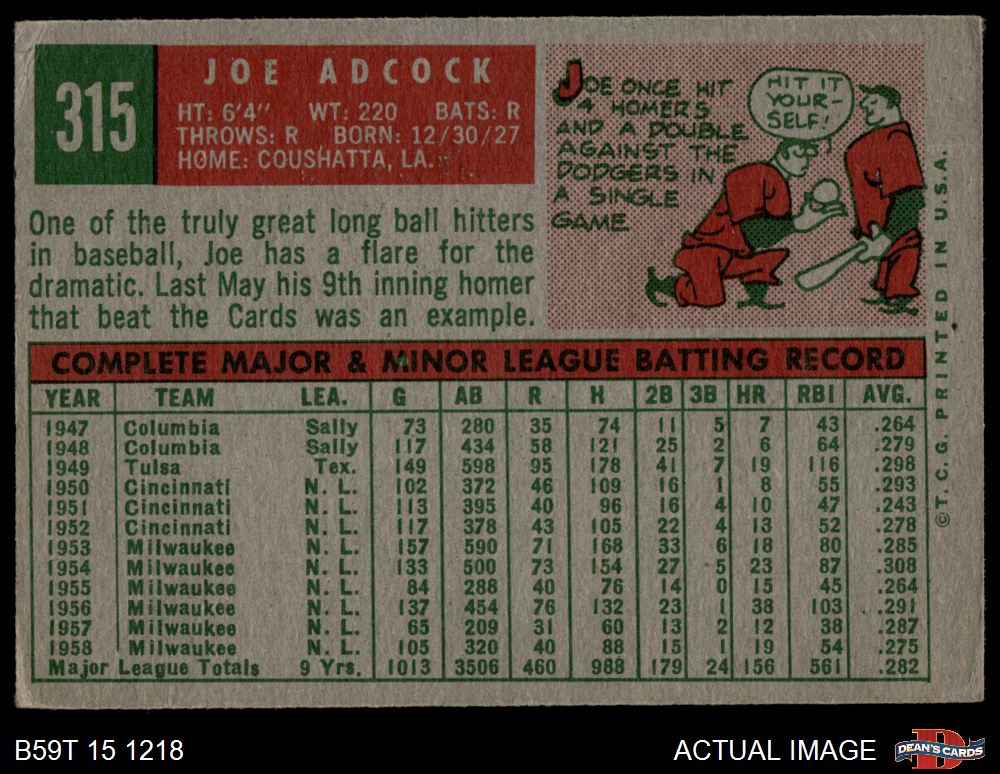 1959 Topps #315 Joe Adcock 3.5 - VG+