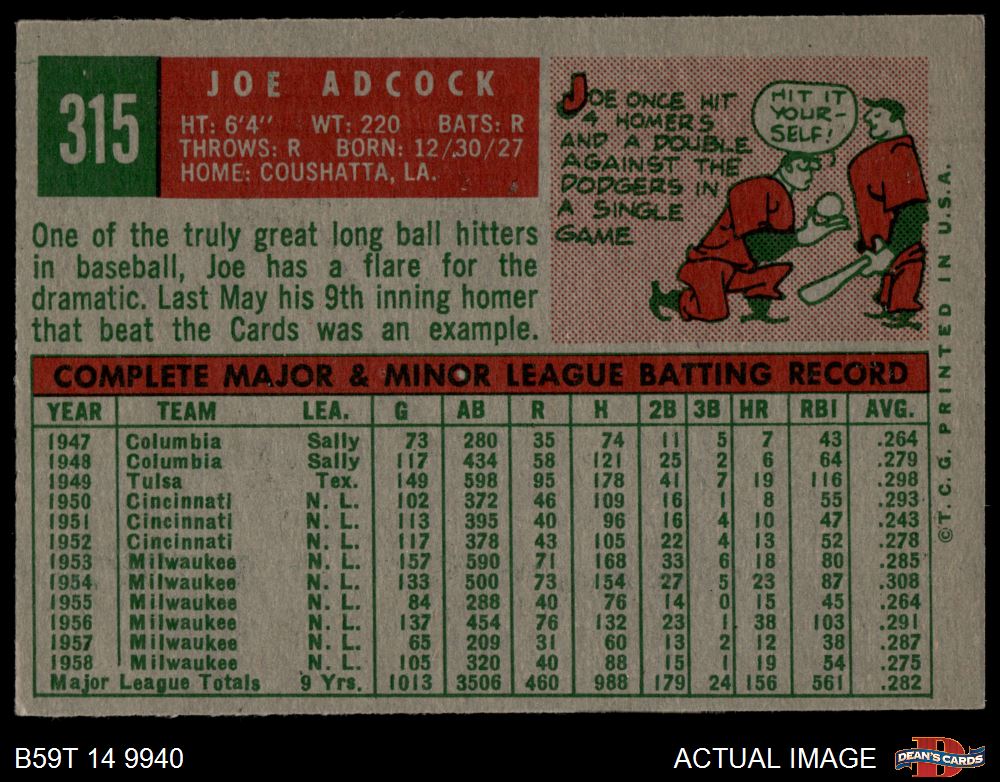 1959 Topps #315 Joe Adcock 5.5 - EX+
