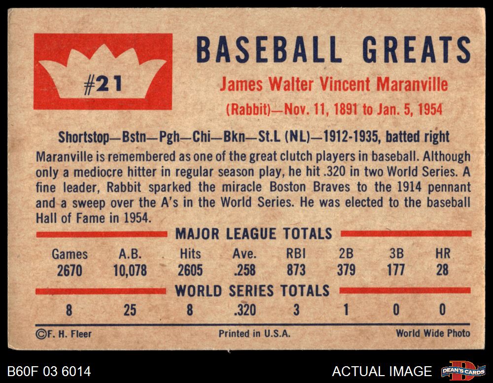 1960 Fleer #21 Rabbit Maranville 2 - GOOD
