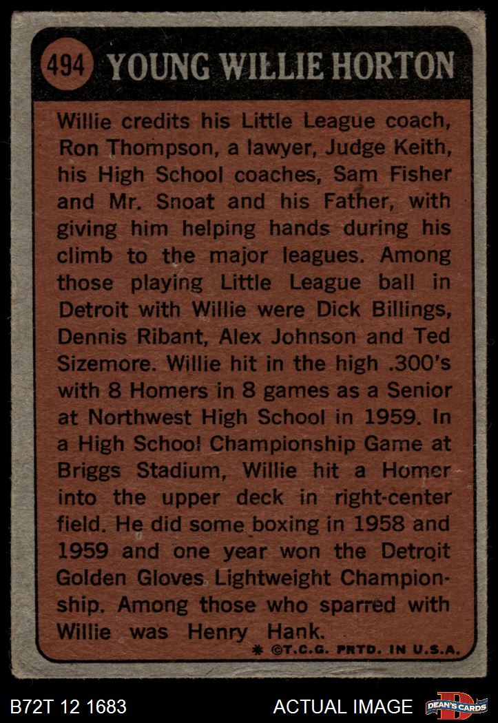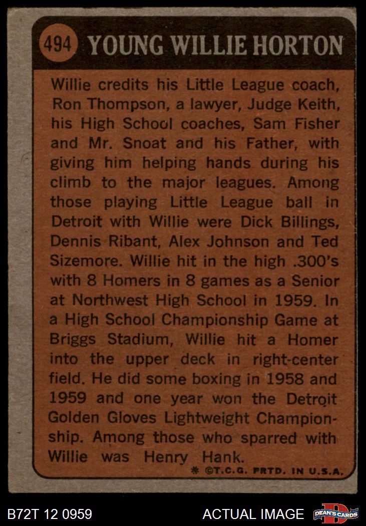 1972 Topps #494 - Willie Horton Boyhood Photo 1.5 - FAIR