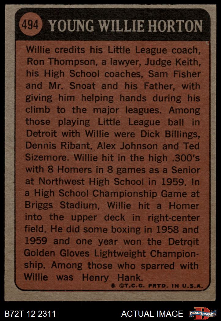 1972 Topps #494 - Willie Horton Boyhood Photo 2.5 - GD+