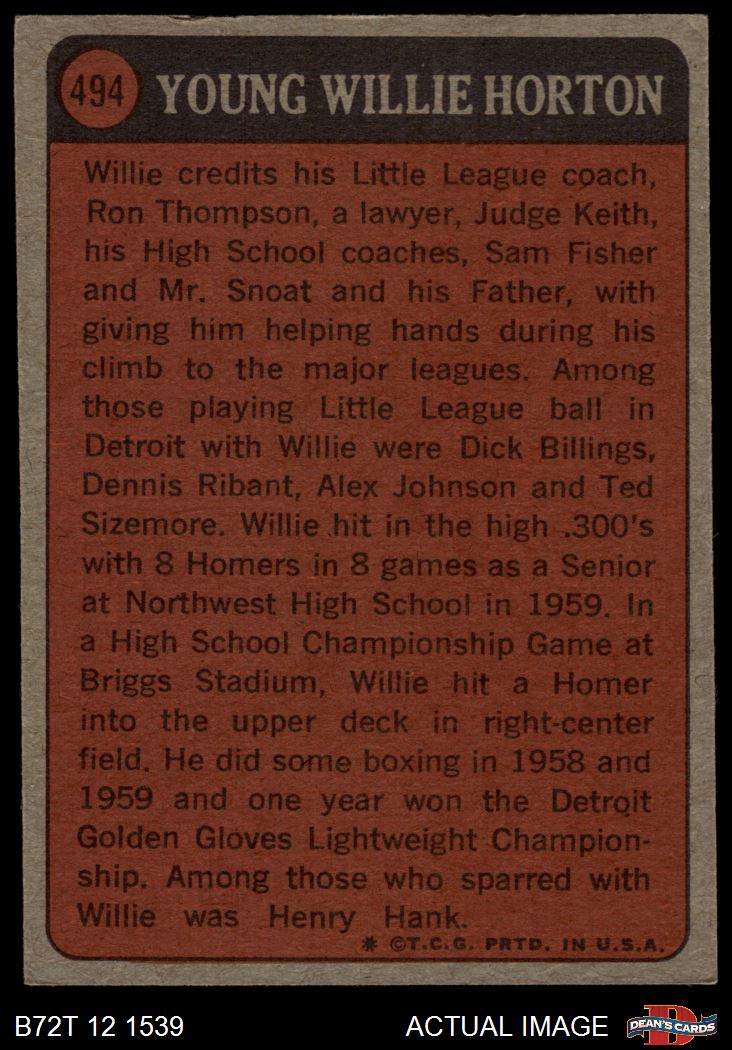 1972 Topps #494 - Willie Horton Boyhood Photo 5 - EX