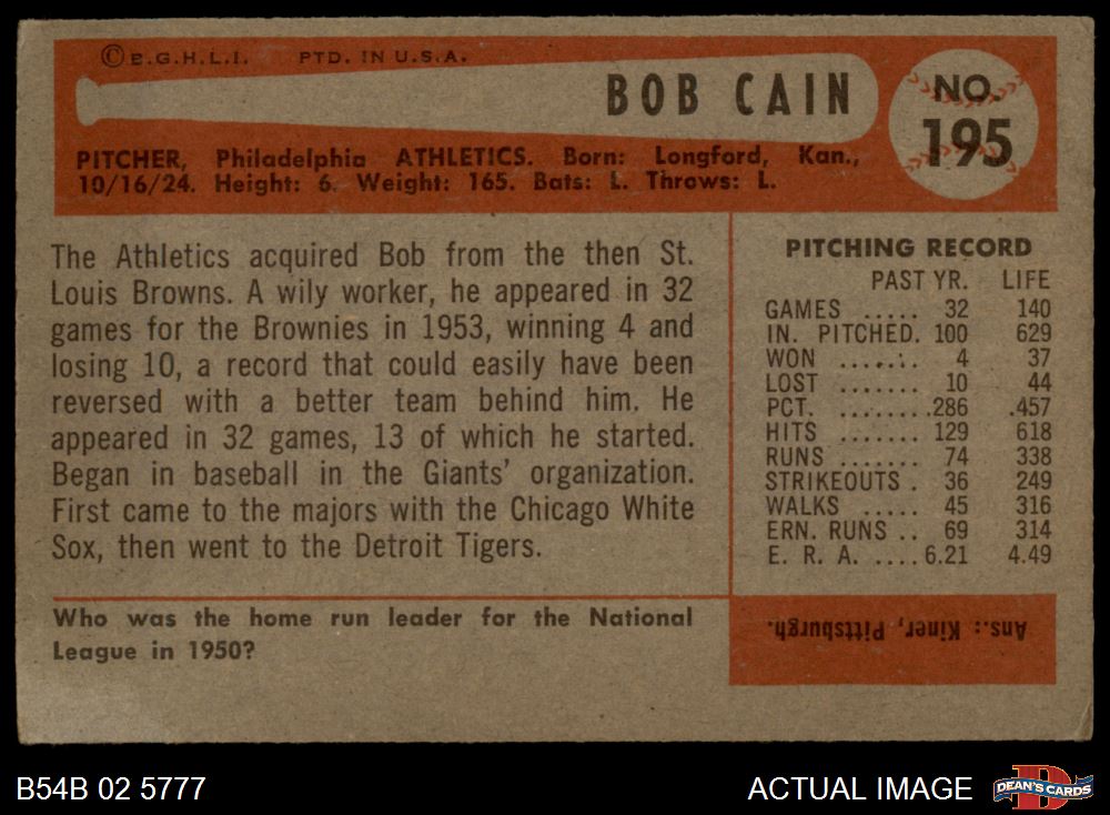 1954 Bowman #195 Bob Cain
