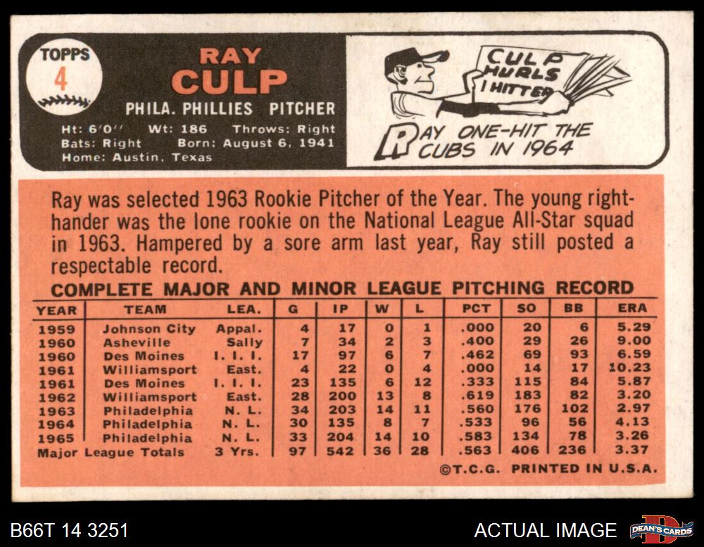 1966 Topps #4 Ray Culp 5.5 - EX+