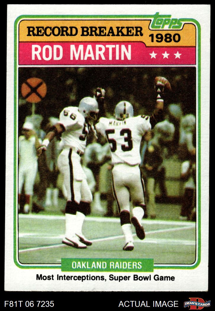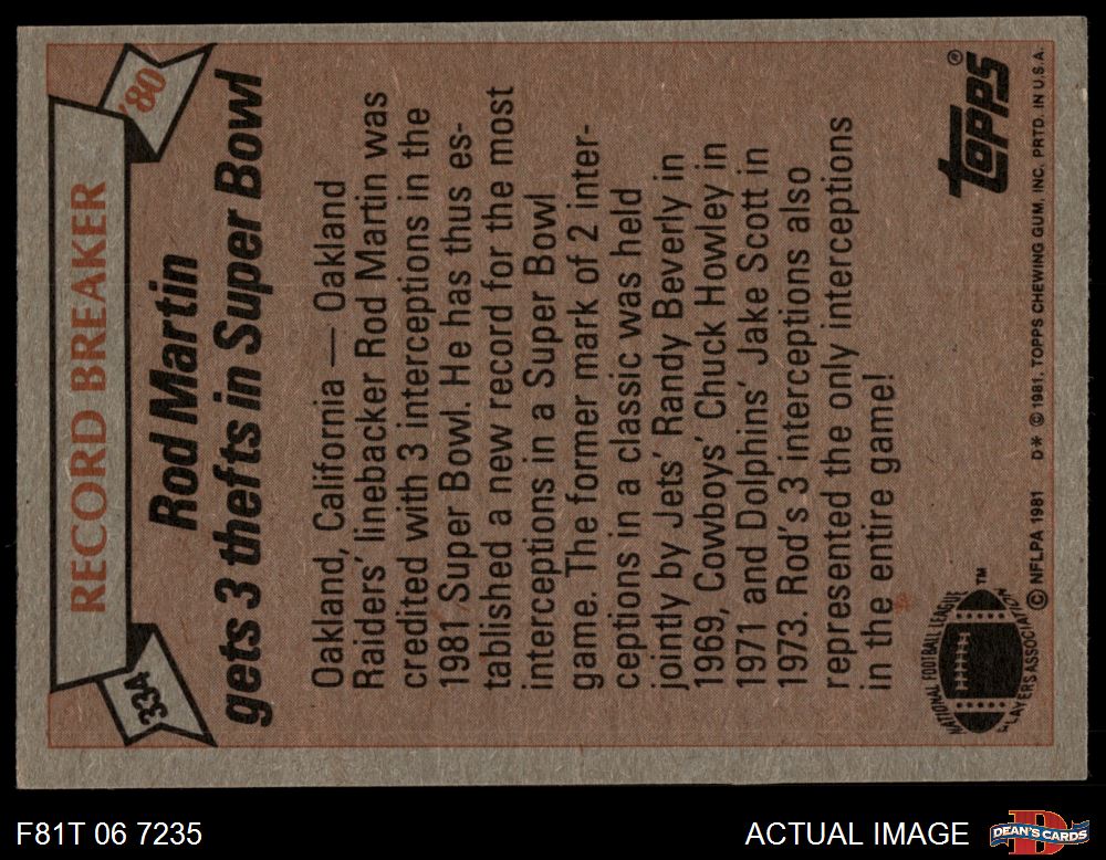 1981 Topps #334 - Rod Martin Record Breaker 7 - NM