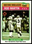 1981 Topps #334 - Rod Martin Record Breaker 8 - NM/MT