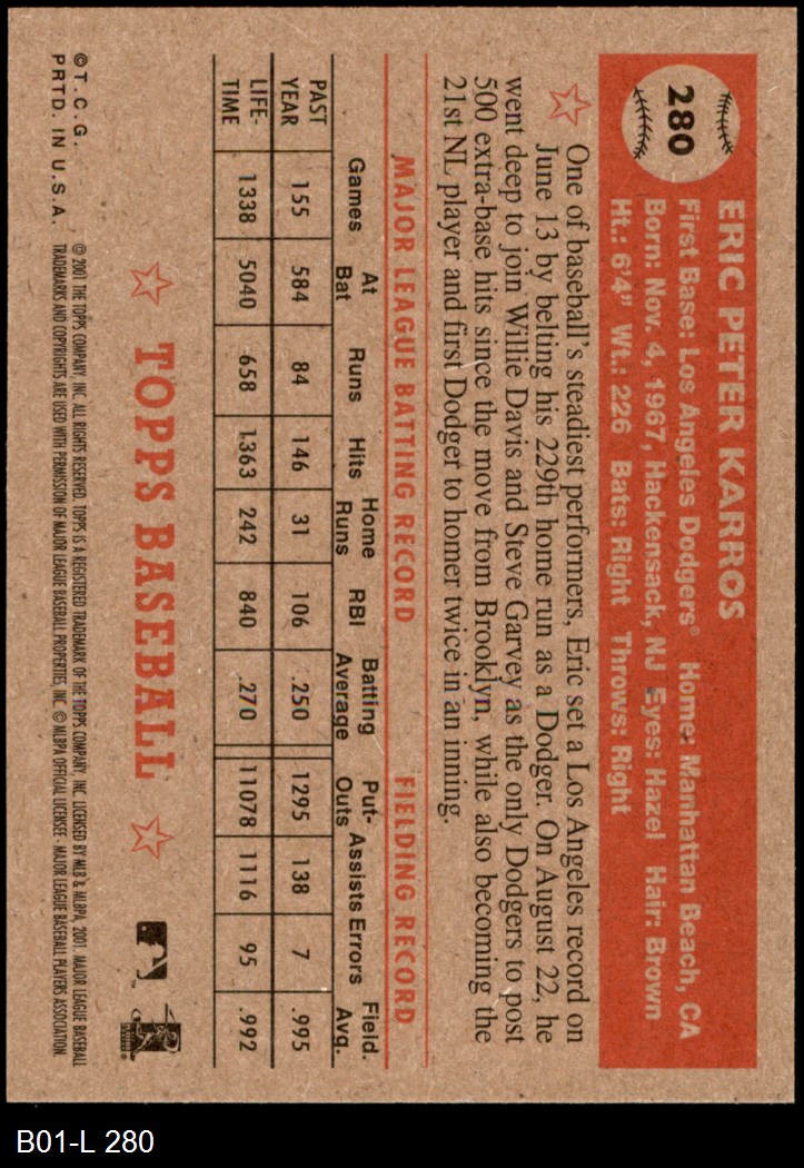 2001 Topps Heritage #280 Eric Karros