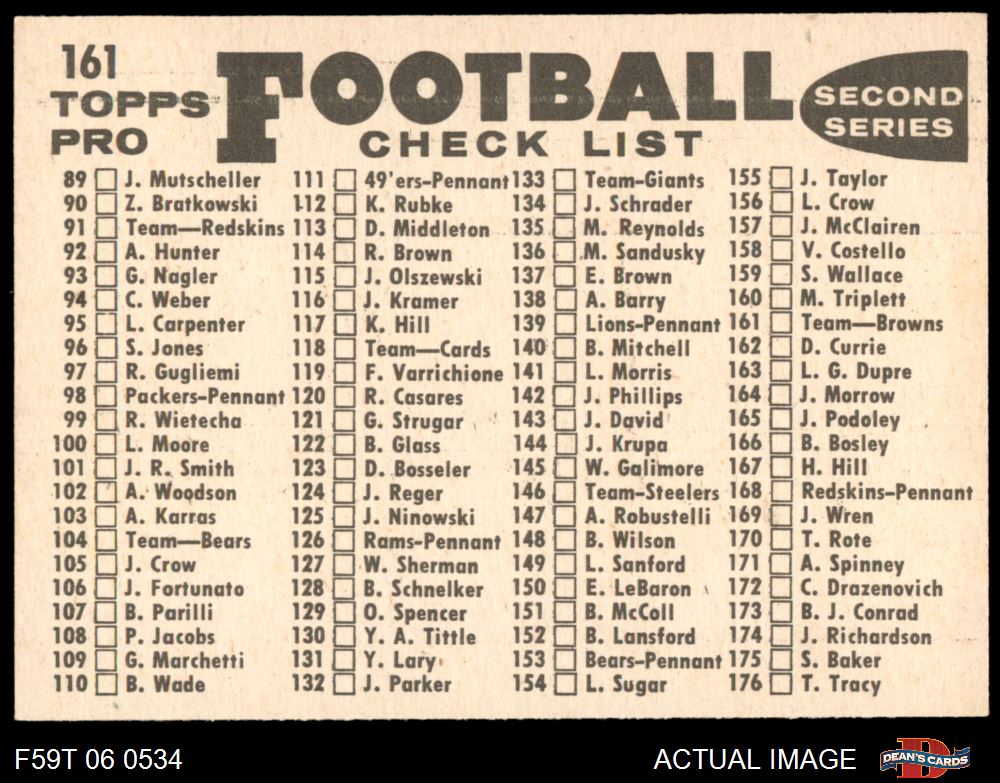 1959 Topps #161 Browns Team Checklist 7 - NM