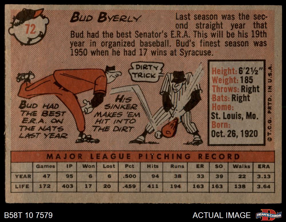 1958 Topps #72 Bud Byerly