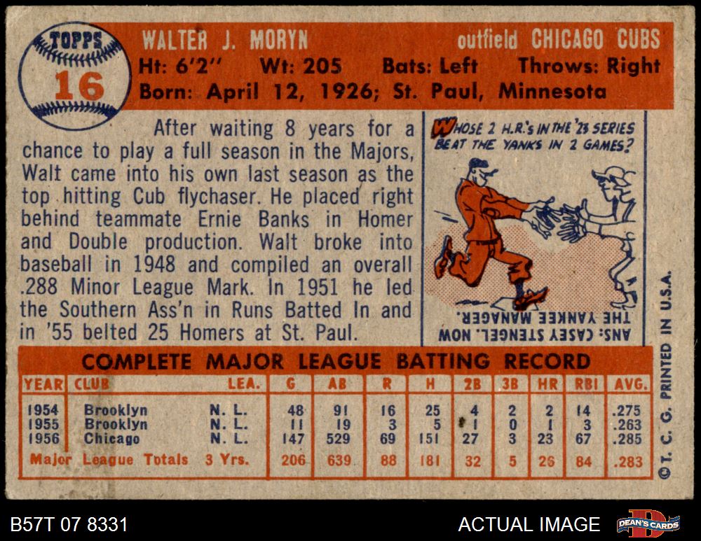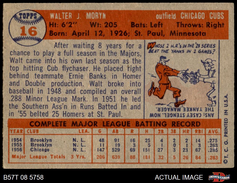 1957 Topps #16 Walt Moryn 4.5 - VG/EX+