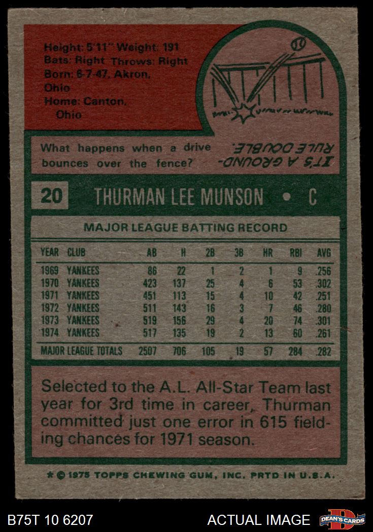 1975 Topps #20 Thurman Munson 4 - VG/EX