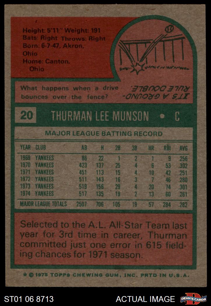 1975 Topps #20 Thurman Munson 6 - EX/MT