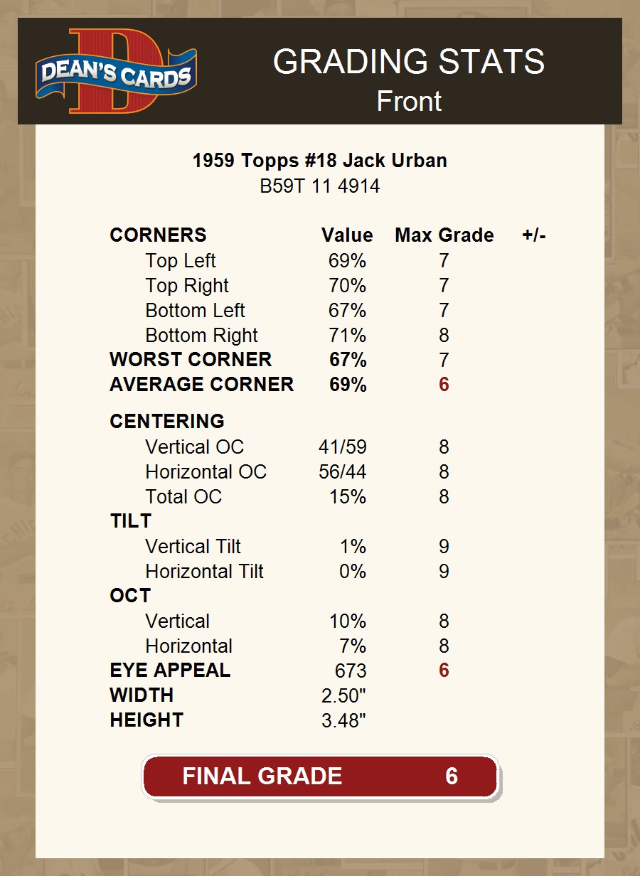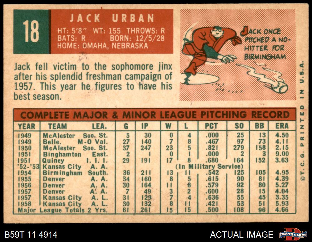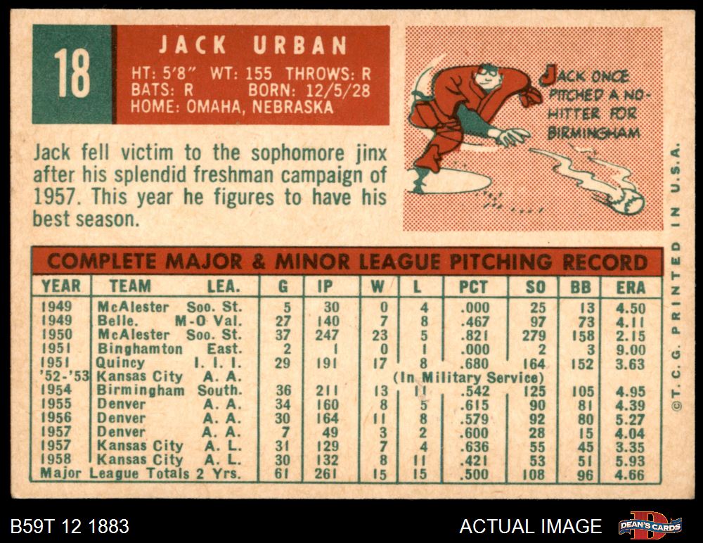 1959 Topps #18 Jack Urban 6 - EX/MT