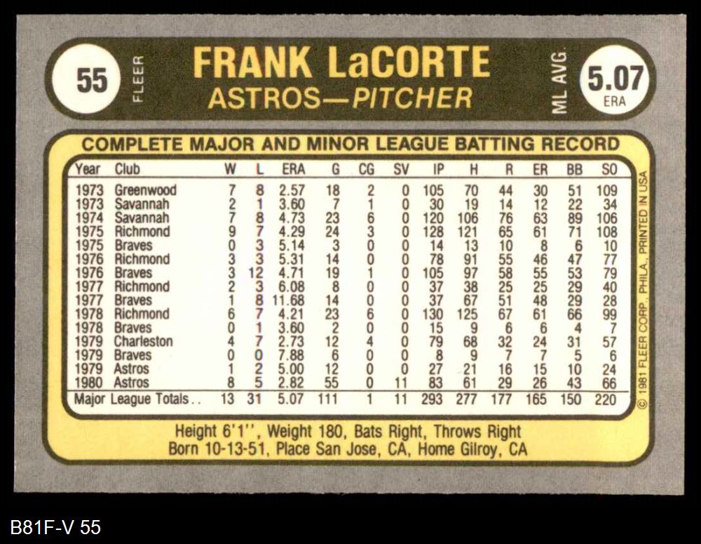 1981 Fleer #55 Frank LaCorte