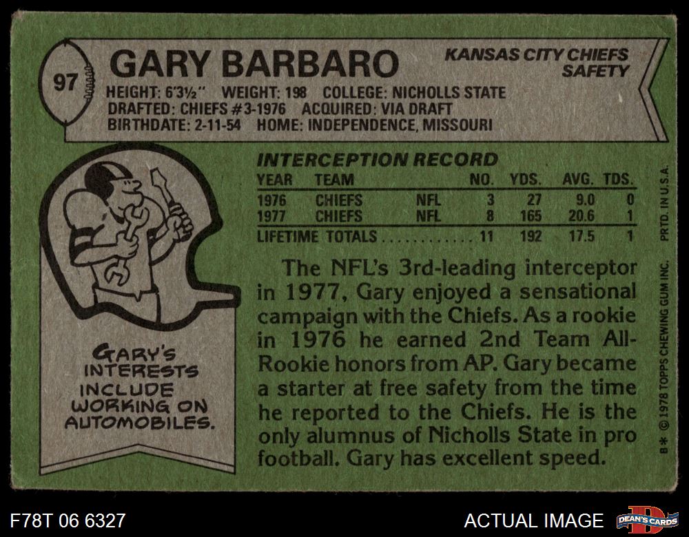 1978 Topps #97 Gary Barbaro 2 - GOOD