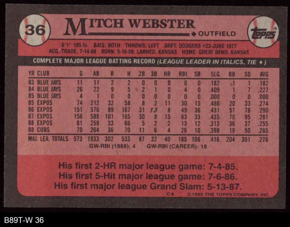 1989 Topps #36 Mitch Webster