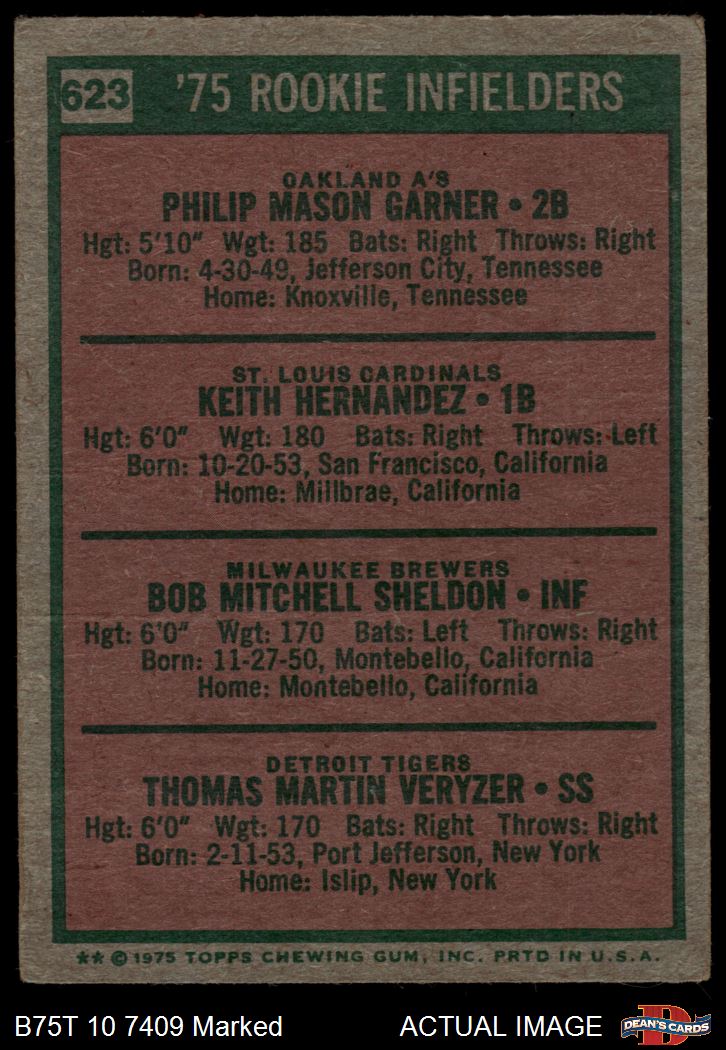 1975 Topps #623 - Keith Hernandez / Phil Garner / Bob Sheldon / Tom Veryzer Rookie Infielders 1 - POOR