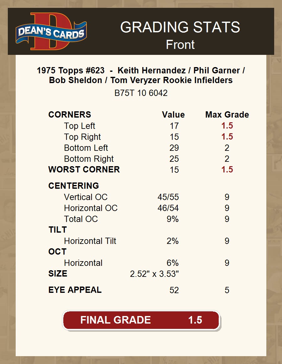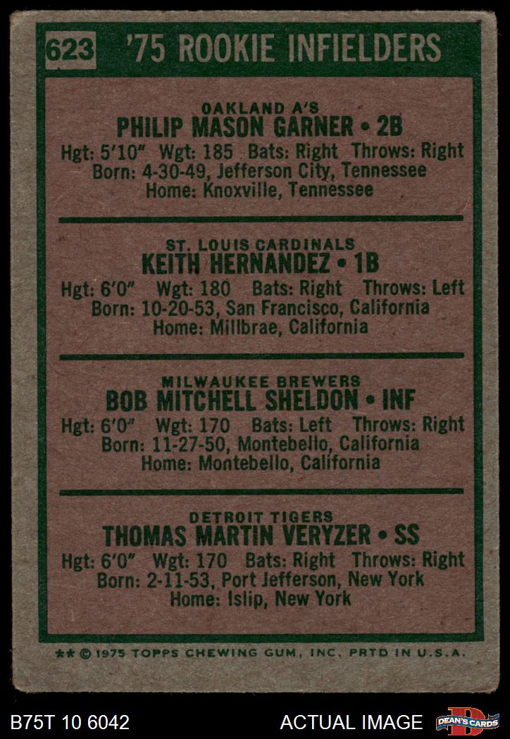 1975 Topps #623 - Keith Hernandez / Phil Garner / Bob Sheldon / Tom Veryzer Rookie Infielders 1.5 - FAIR