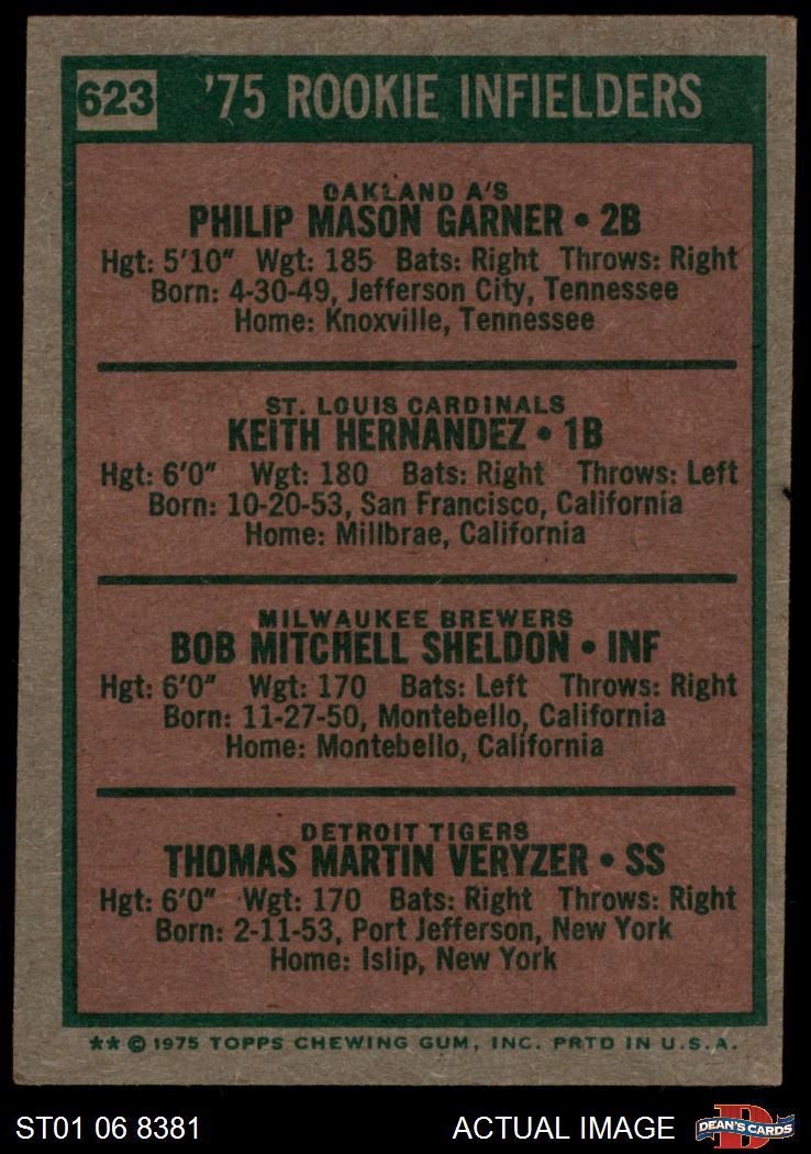 Keith Hernandez / Phil Garner / Bob Sheldon / Tom Veryzer (22 available)