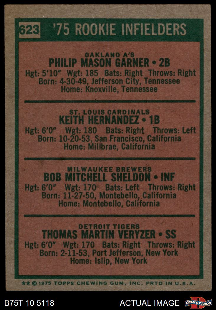 1975 Topps #623 - Keith Hernandez / Phil Garner / Bob Sheldon / Tom Veryzer Rookie Infielders 3 - VG