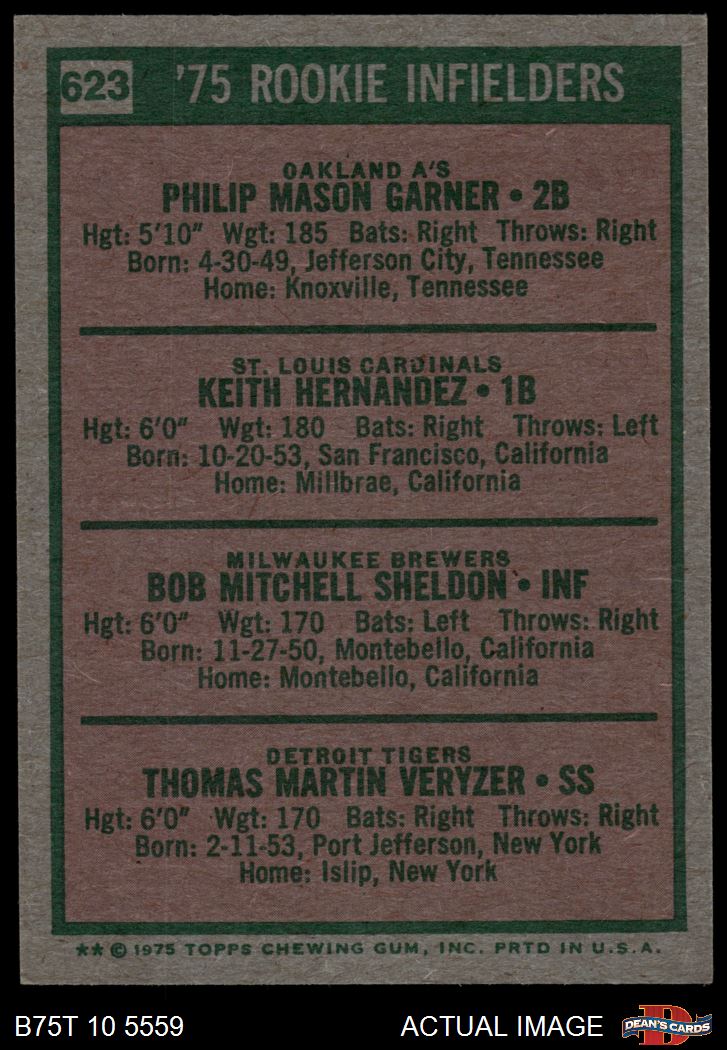 1975 Topps #623 - Keith Hernandez / Phil Garner / Bob Sheldon / Tom Veryzer Rookie Infielders 6 - EX/MT