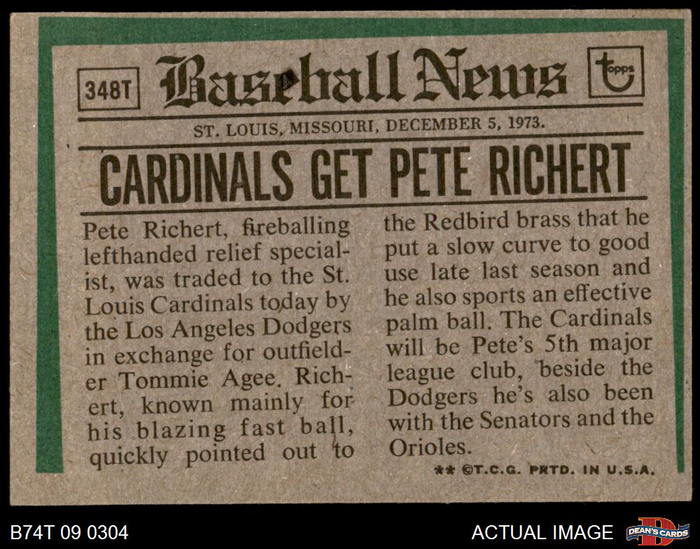 1974 Topps #348 T - Pete Richert Traded 6 - EX/MT