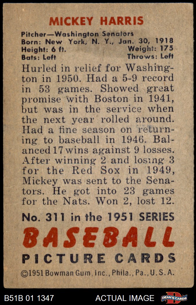 1951 Bowman Baseball Cards (1,834 available)1951 Bowman Senators (206 available)
