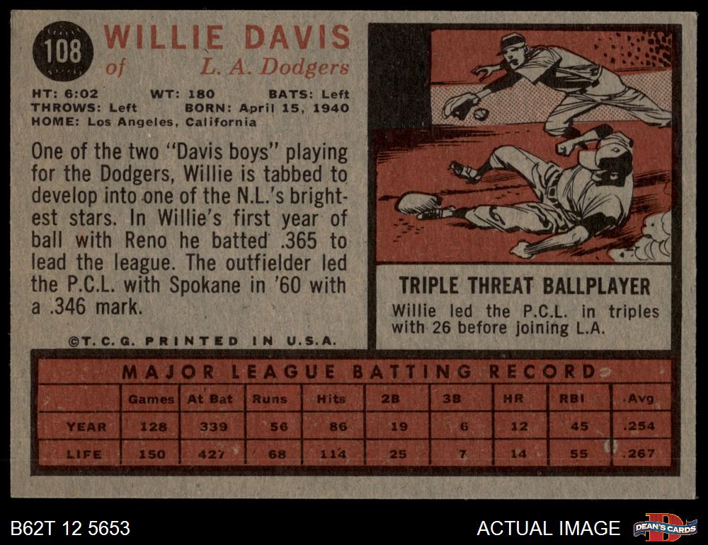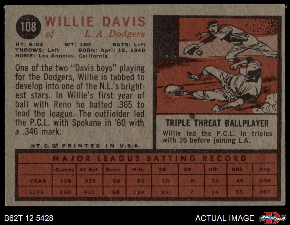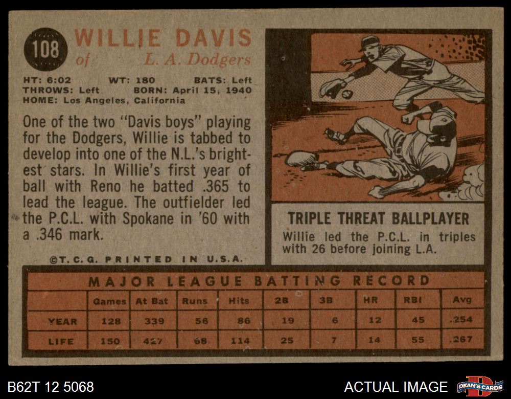 1962 Topps #108 Willie Davis 3 - VG