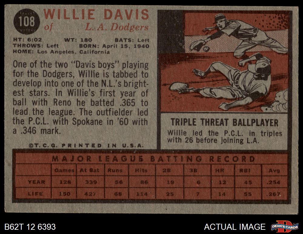 1962 Topps #108 Willie Davis 3.5 - VG+