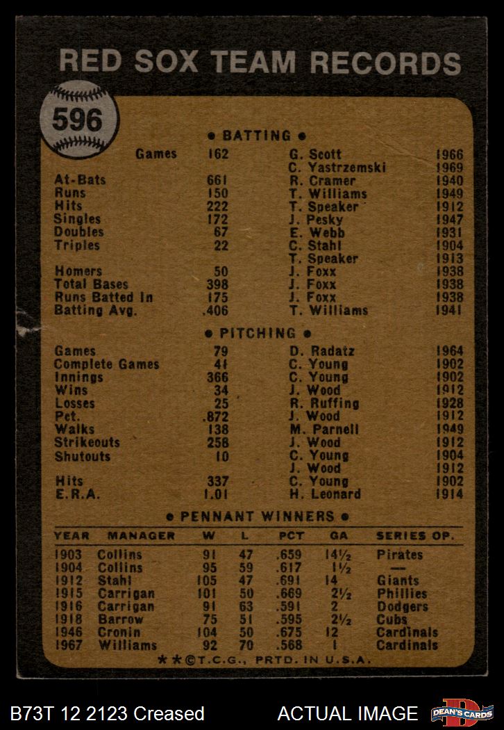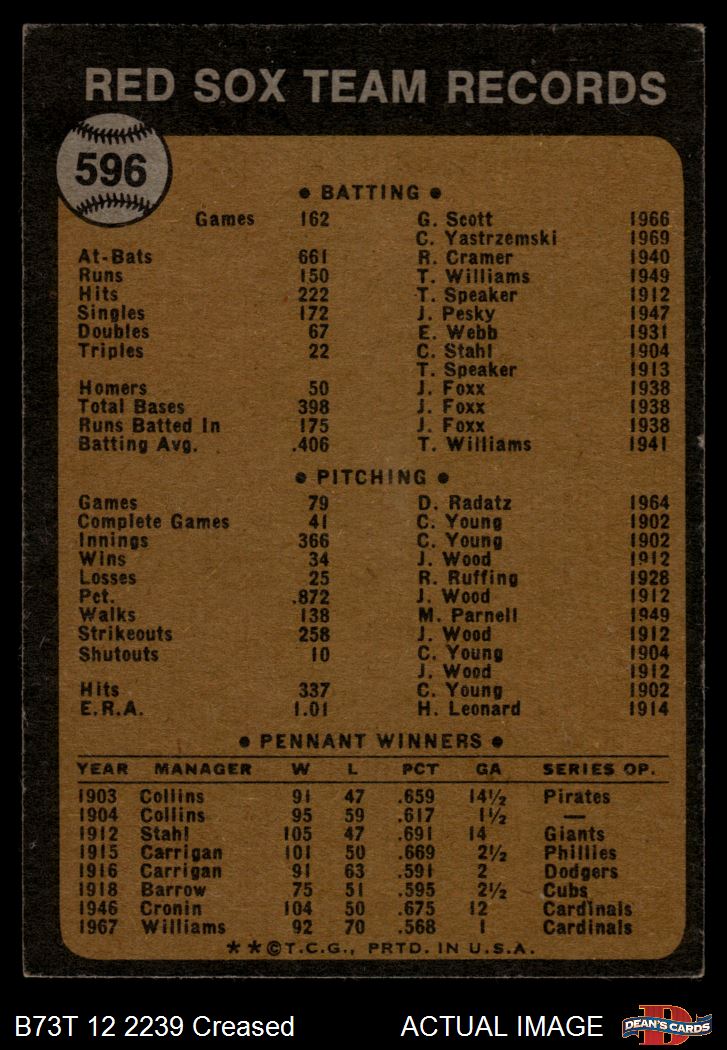 1973 Topps #596 Red Sox Team 2 - GOOD