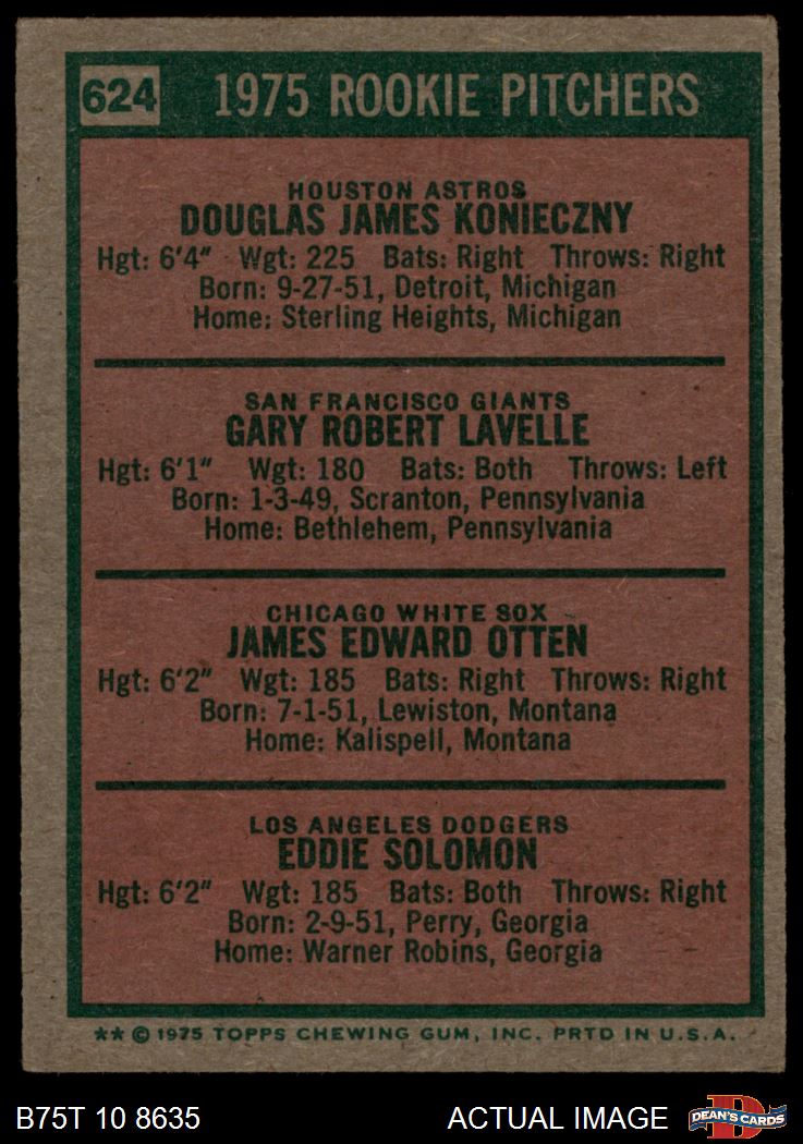 1975 Topps #624 - Gary Lavelle / Doug Konieczny / Jim Otten / Eddie Solomon Rookie Pitchers 3 - VG