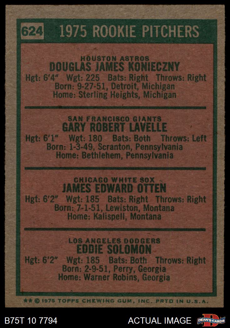1975 Topps #624 - Gary Lavelle / Doug Konieczny / Jim Otten / Eddie Solomon Rookie Pitchers 7 - NM