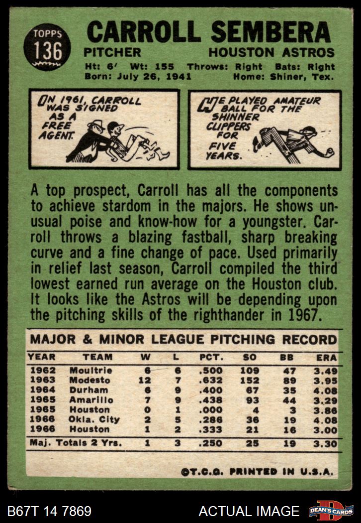 1967 Topps #136 Carroll Sembera 2.5 - GD+