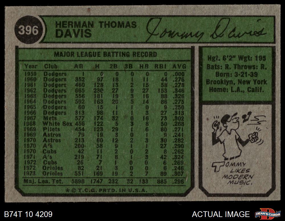 1974 Topps #396 Tommy Davis 3 - VG