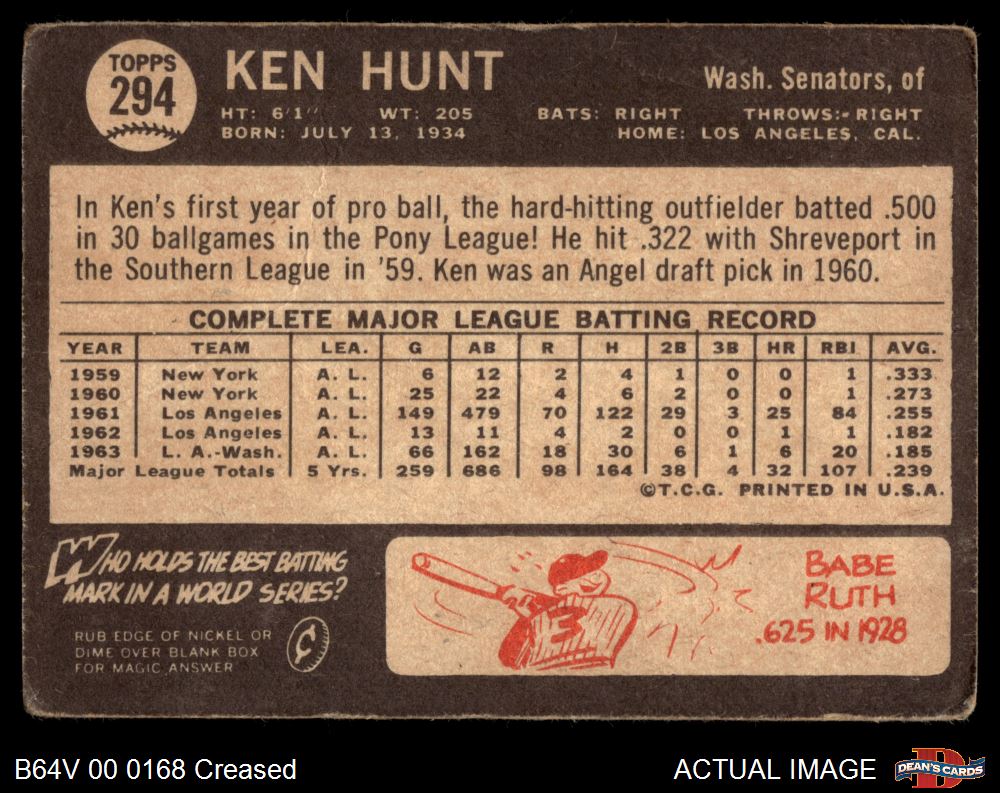 1964 Topps Venezuelan #294 Ken Hunt Front Thumbnail