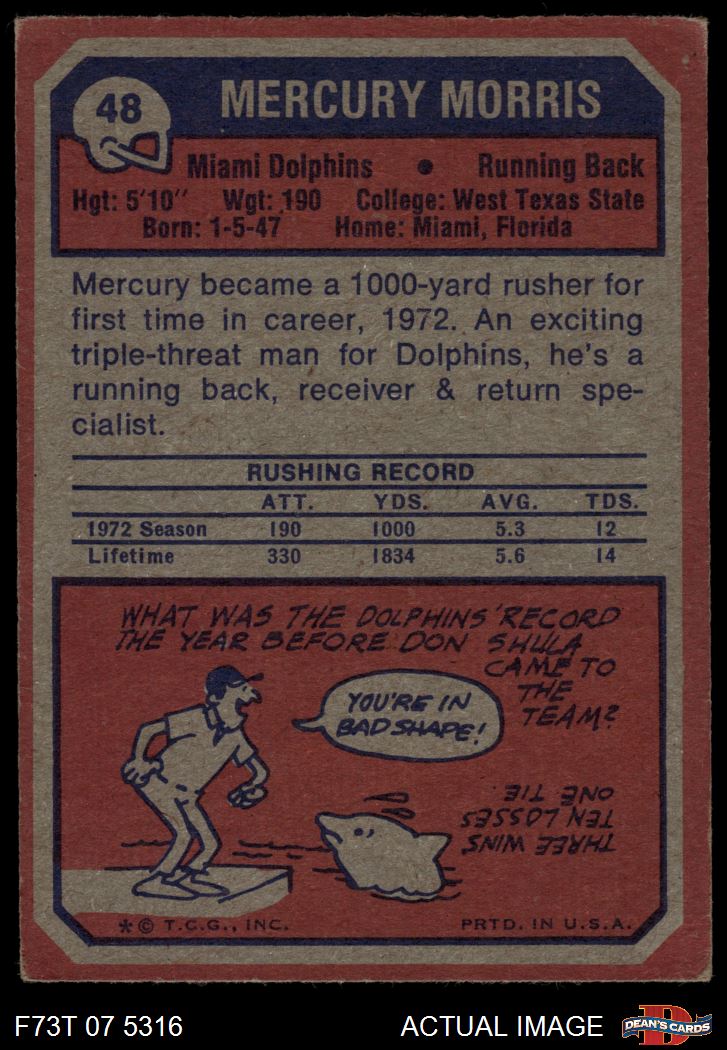 1973 Topps #48 Mercury Morris 3 - VG